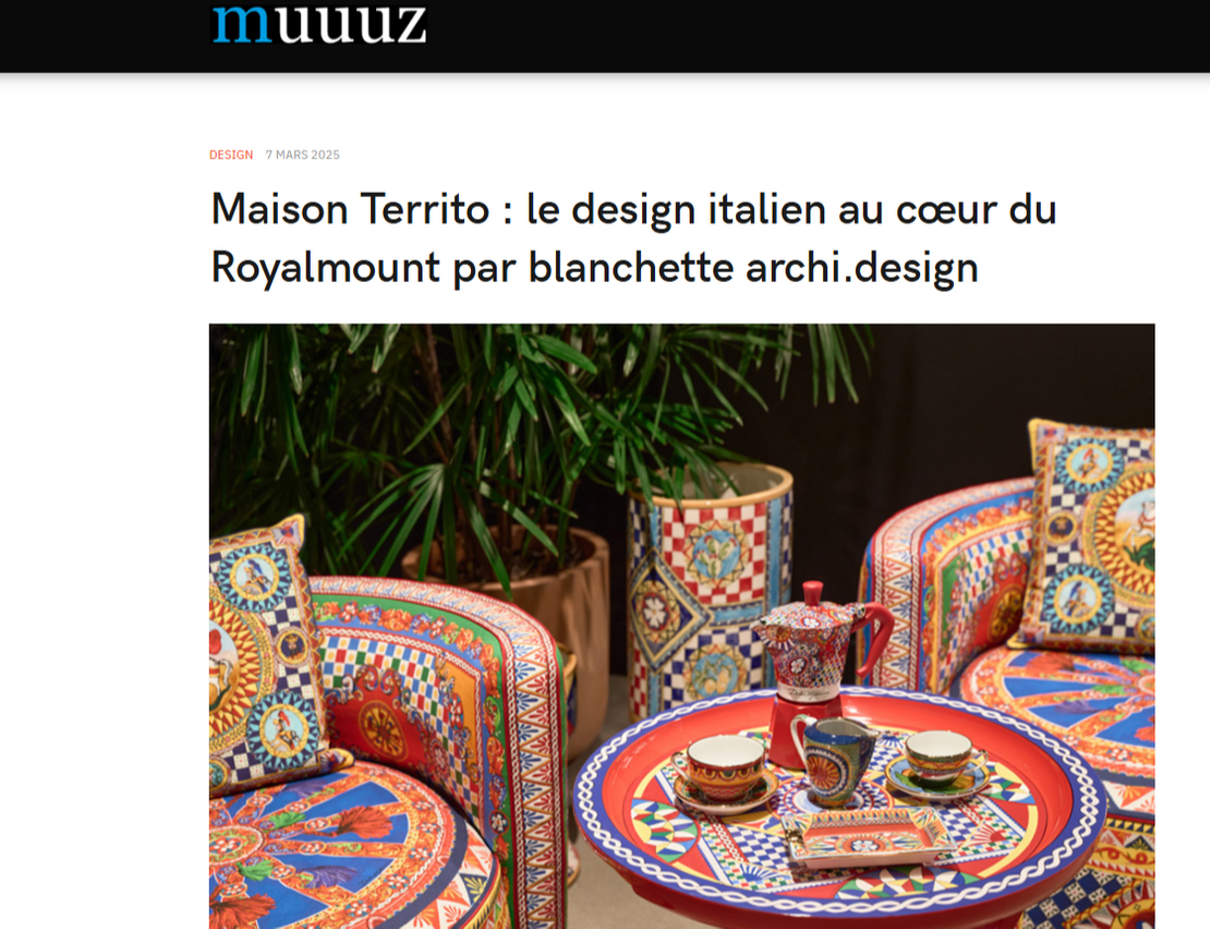 “A new era for Italian luxury design in CanadaIn the spring of 2025, Montreal marked a turning point in luxury interior design with the arrival of Maison Territo in Royalmount. This innovative showroom is the first Canadian destination to bring together under one roof the world's most prestigious Italian design houses, including Fendi Casa, Dolce & Gabbana Casa, Versace Home, Bentley Home and Gallotti & Radice.”