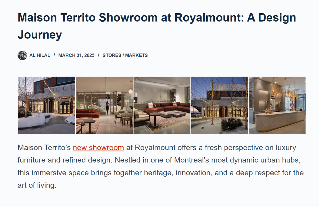 "The new Maison Territo boutique at Royalmount offers a fresh perspective on luxury furniture and refined design."