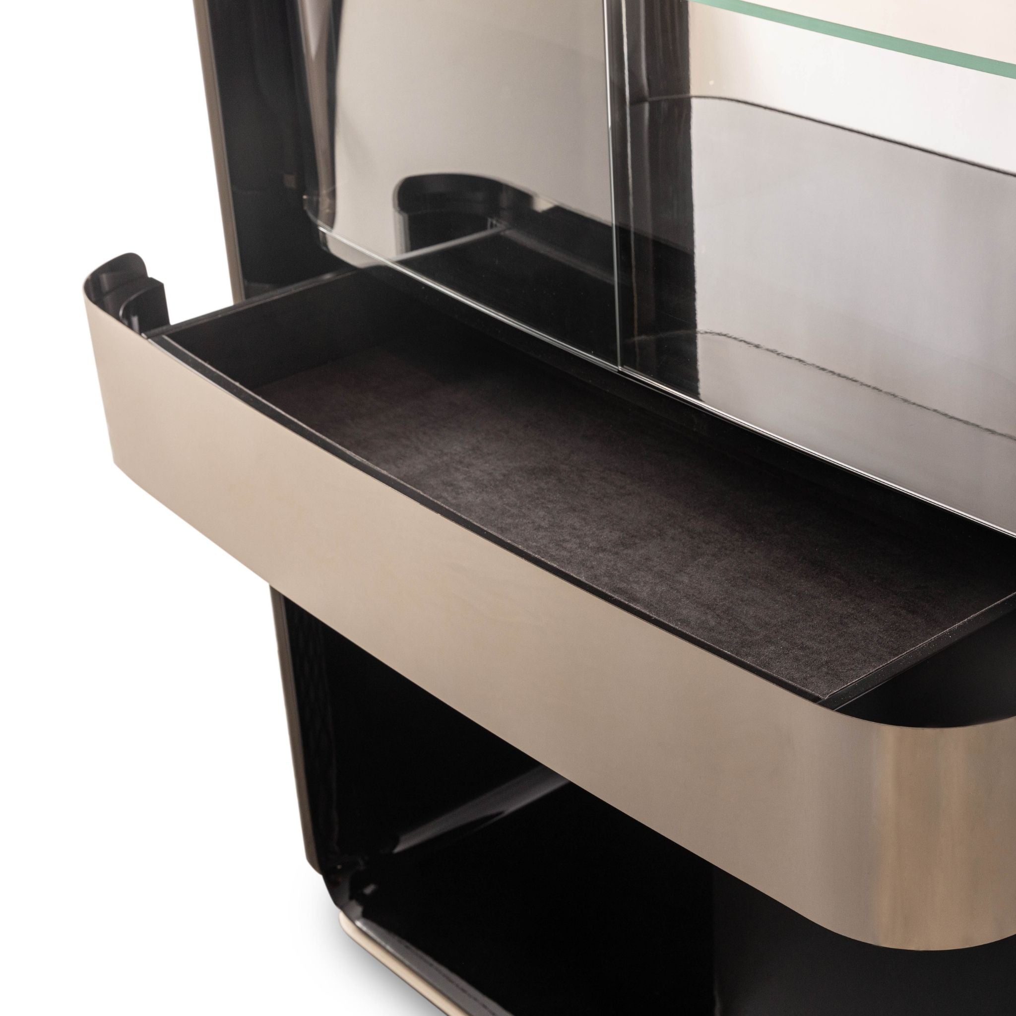 Radiating Bentley Home's hallmark sophistication, the Havergate bookcase is a true work of art. Its streamlined structure features beveled cuts, inspired by Bentley's aerodynamic aesthetics. Havergate embodies a seamless fusion of refinement and design.