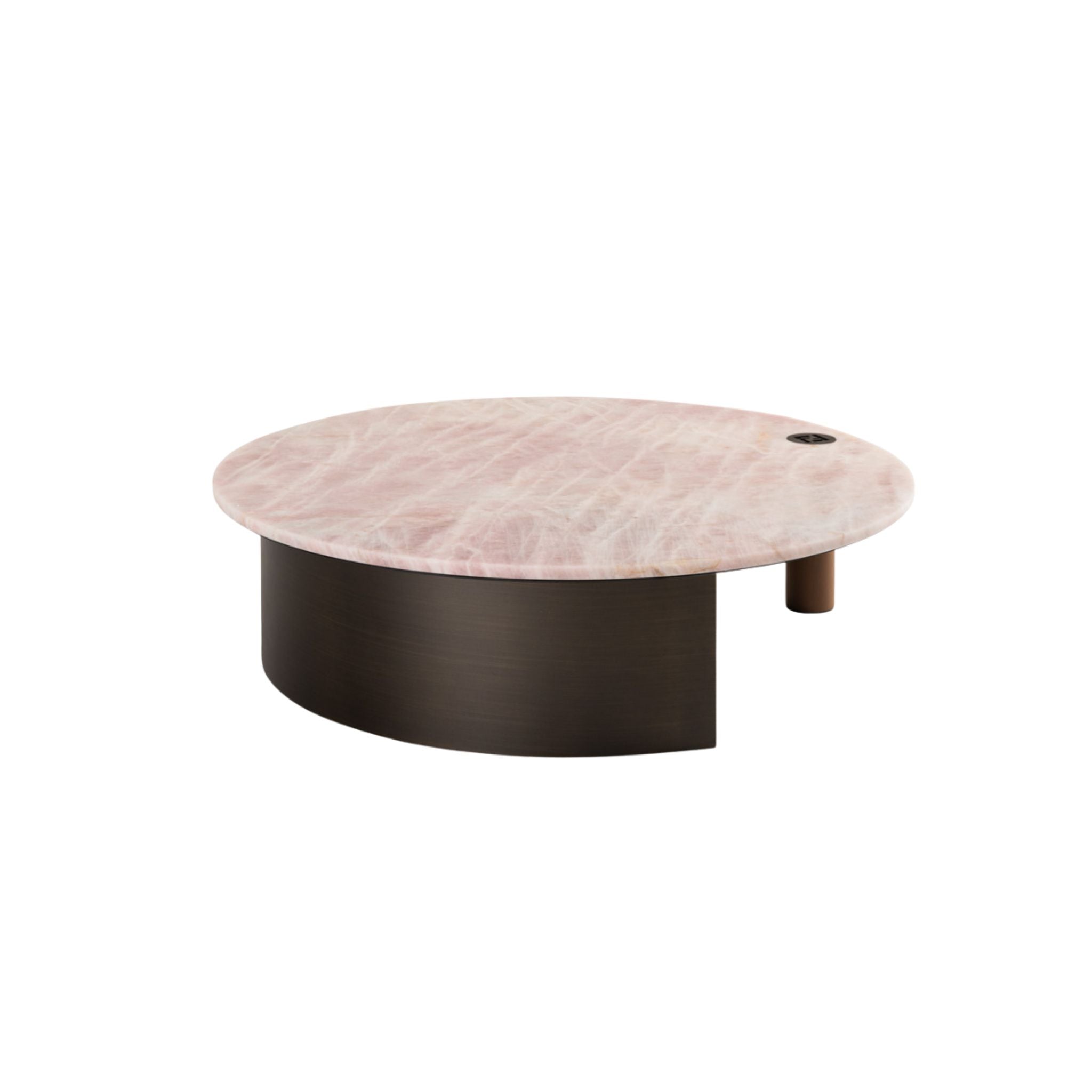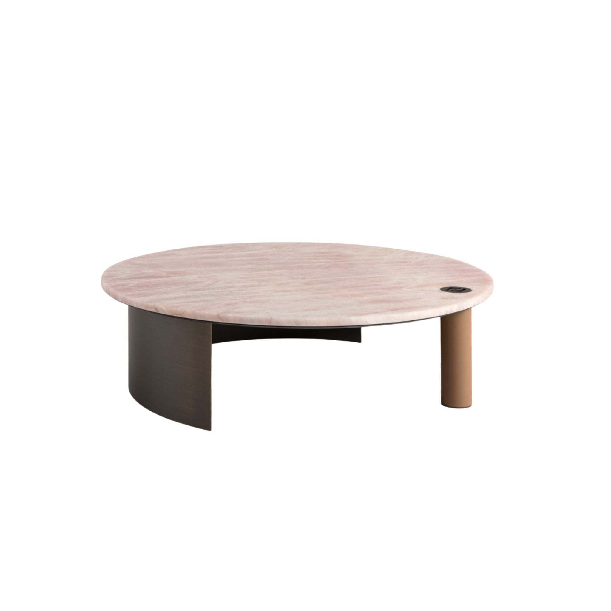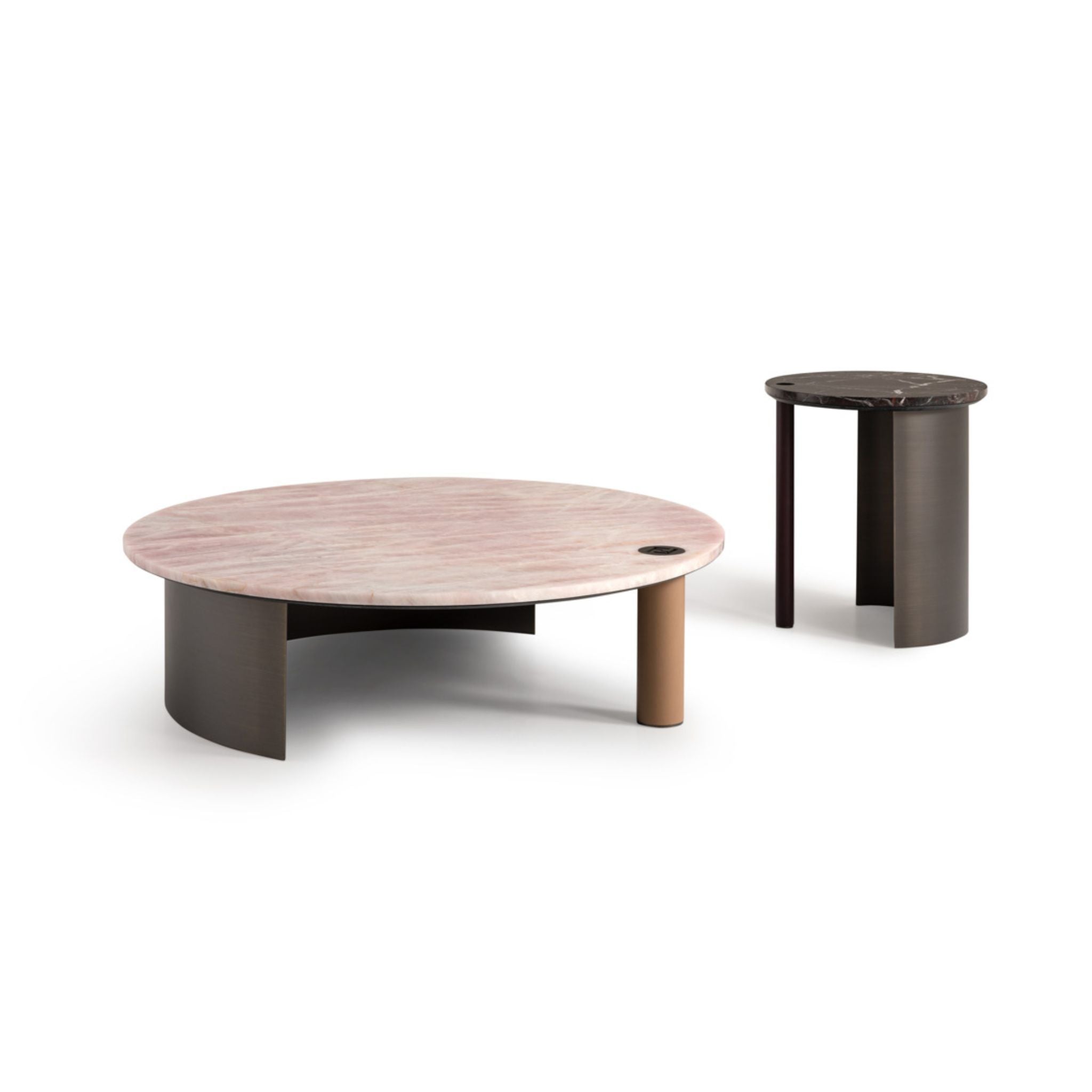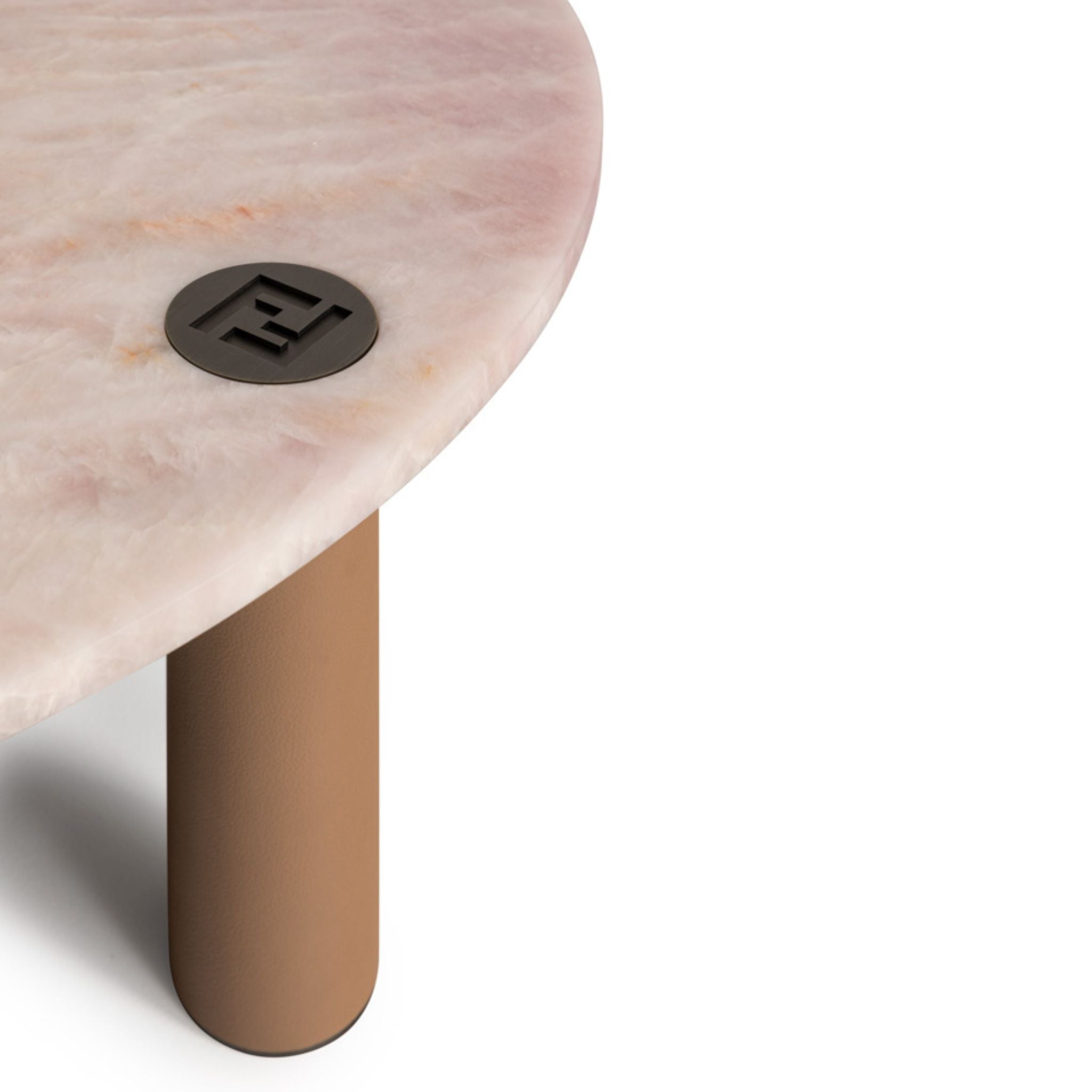 Designed by Jonas Van Put for Fendi Casa, the Lunar coffee table captures the magic of the full moon with its minimalist design, characterized by a curved metal base and round marble top. Available in five impeccably crafted variations, this coffee table collection elegantly combines marble, leather and metal. Fusing vintage and contemporary allure, Lunar brings a touch of uniqueness and charm to any living space.