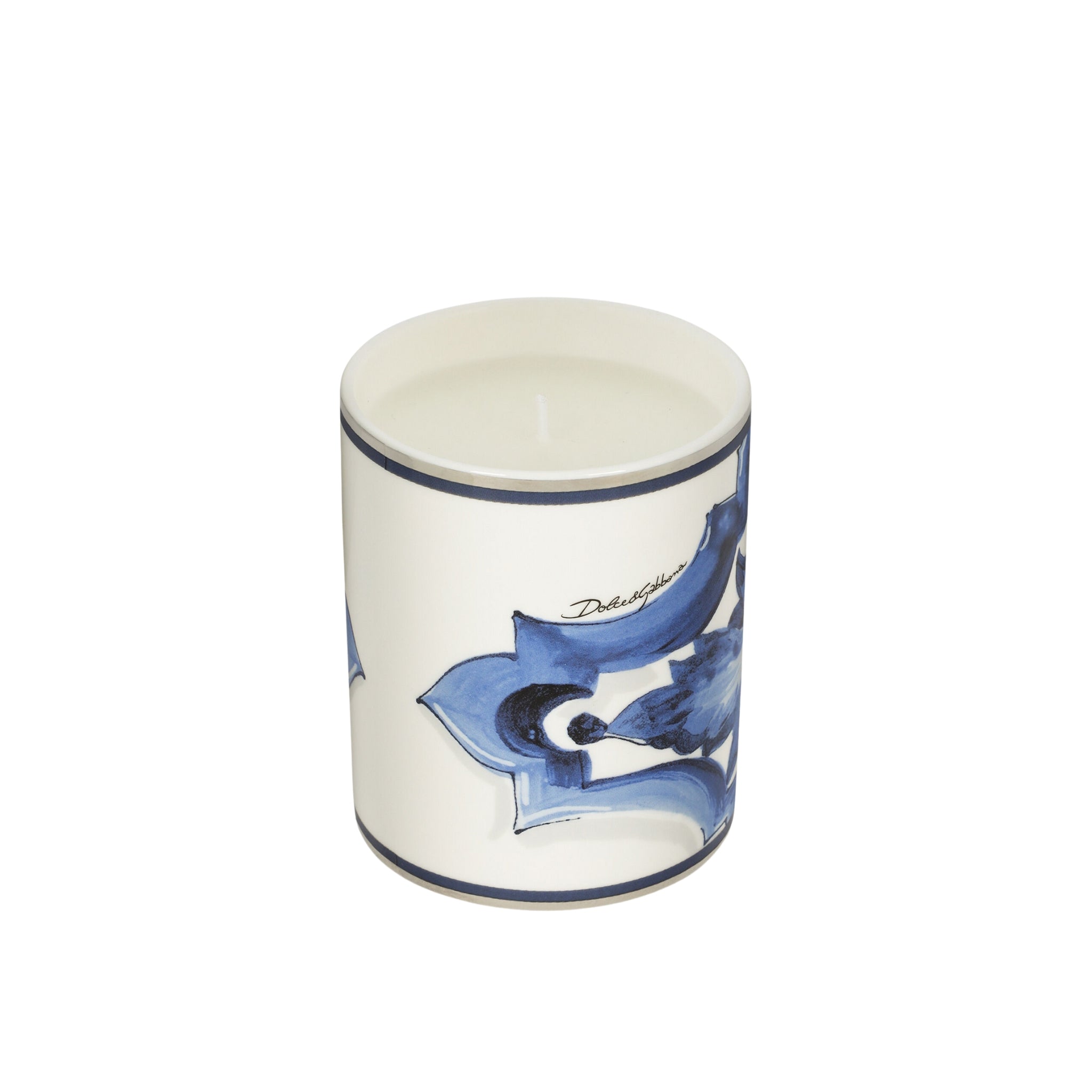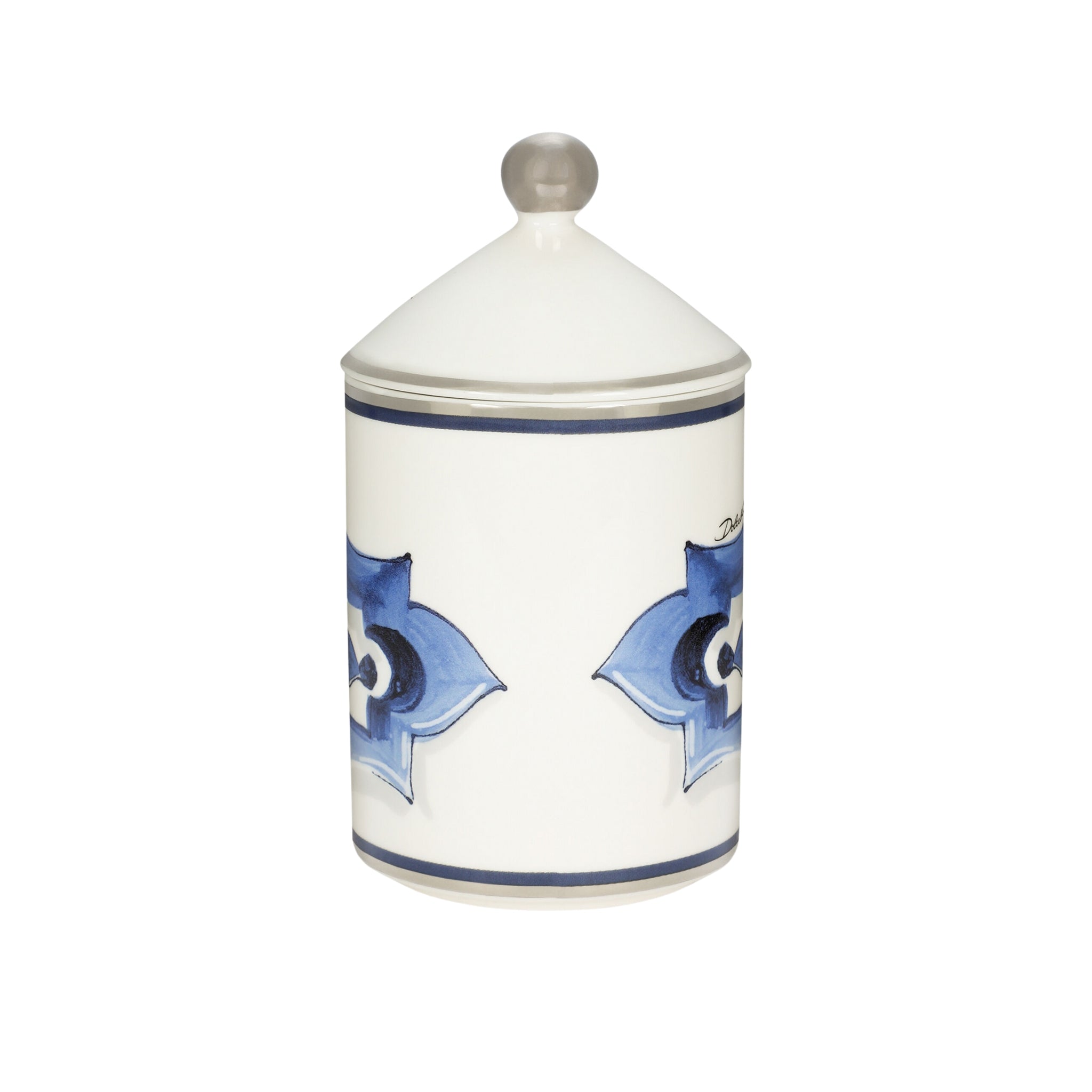 Sicilian Neroli and Lemon scented candle by Dolce & Gabbana Casa combines the scent of neroli, extracted from fragrant bitter orange blossoms, with a zesty lemon note. This olfactory experience transports you to the seaside, enhanced by the majolica pattern on the porcelain container and lid, trimmed with hand-painted silver detailing, recalling the pure white and intense blue typical of Southern Italy.