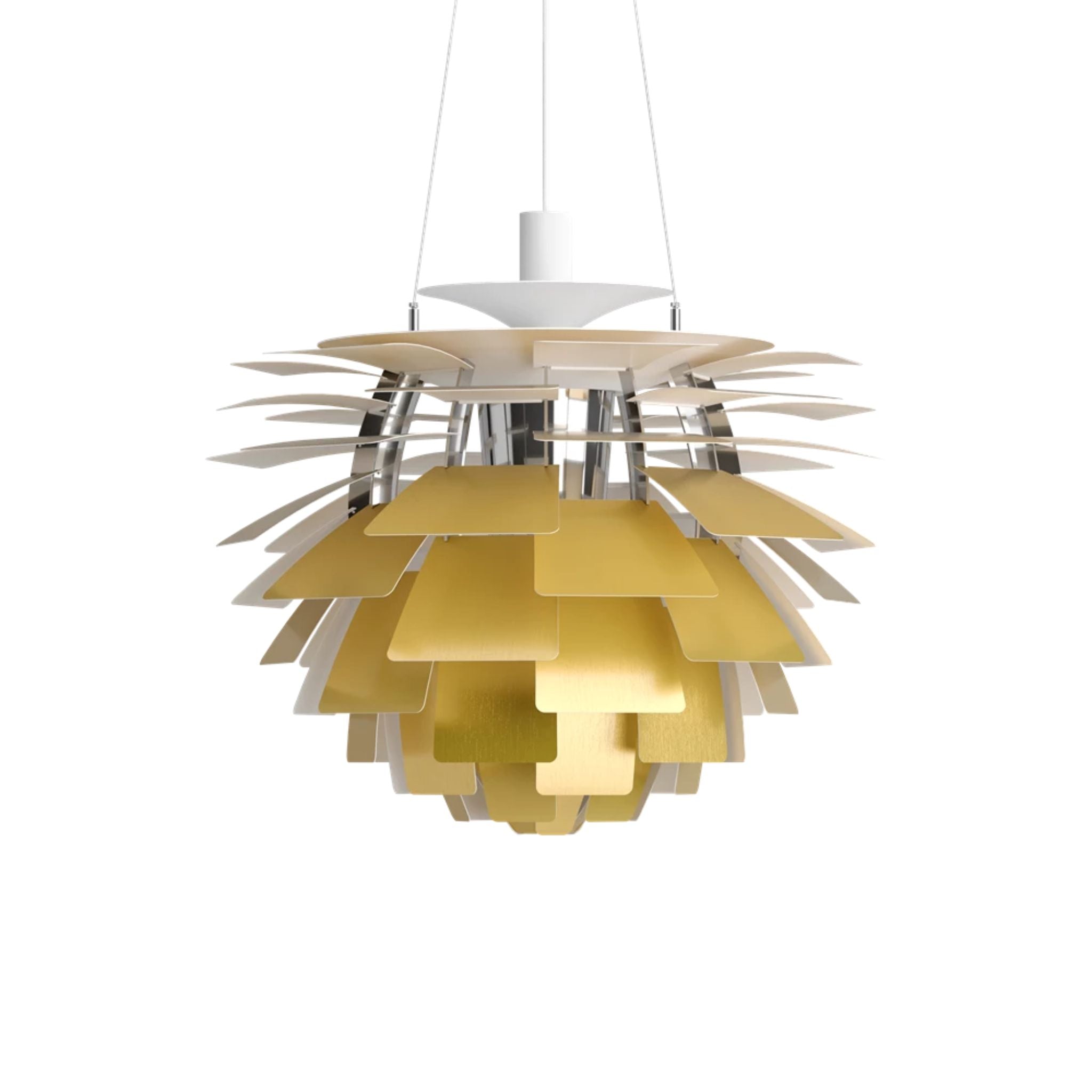 Le luminaire suspendu PH Artichoke de Louis Poulsen représente l'apogée du génie créatif de Poul Henningsen. Conçu en seulement trois mois en 1958 pour le restaurant Langelinie Pavilion de Copenhague, ce chef-d'œuvre du design danois s'inspire des principes développés par Henningsen dès les années 1927-1931 avec sa PH Septima. La structure unique composée de 72 feuilles métalliques disposées en 12 rangées de six feuilles chacune crée un système d'éclairage révolutionnaire. Chaque feuille, soigneusement positionnée, contribue à diffuser la lumière de manière uniforme, à la fois vers l'intérieur et vers l'extérieur, éliminant tout risque d'éblouissement. Le résultat est une lumière douce et enveloppante qui transforme n'importe quel espace.