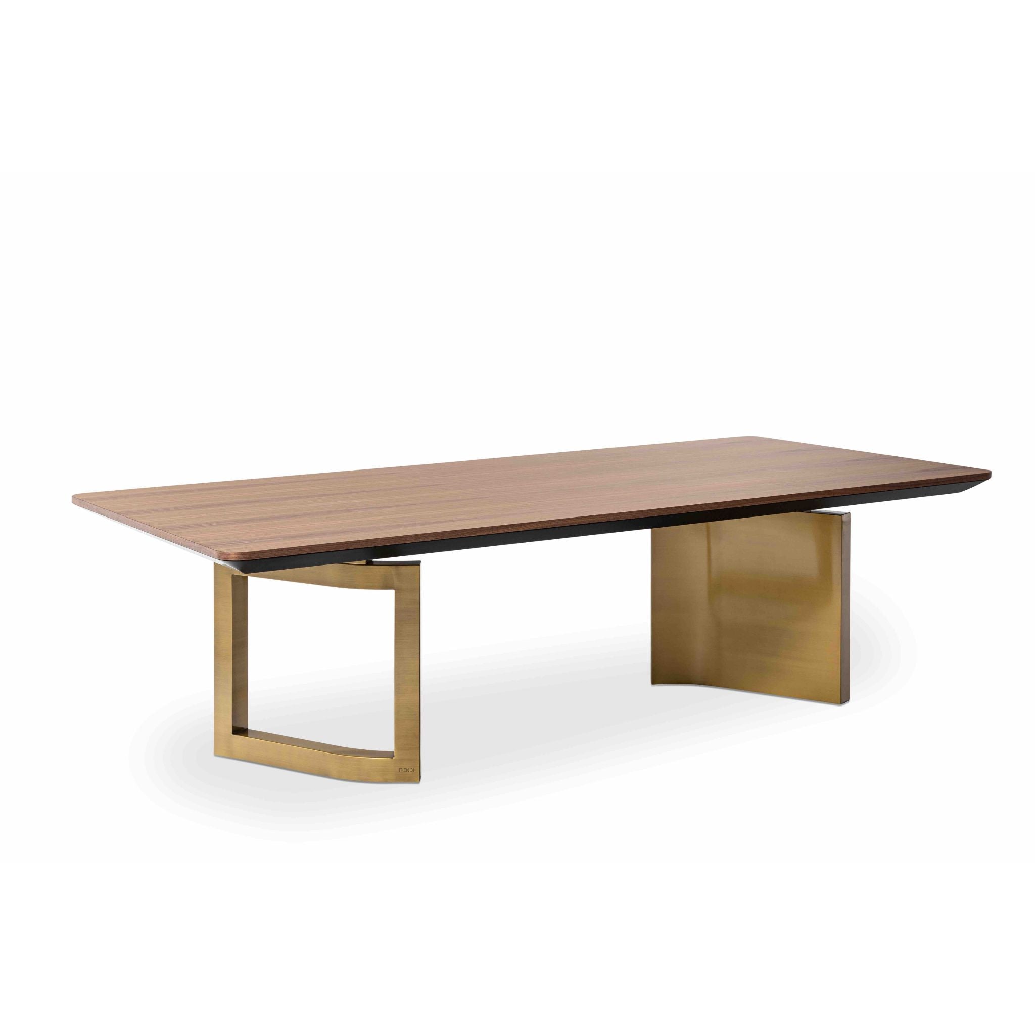 La table de salle à manger Ford de Fendi Casa allie des éléments classiques à une architecture moderne et audacieuse. Son plateau, disponible en version ronde ou rectangulaire, repose sur des pieds en acier asymétriques, pliés et découpés à la main pour un effet visuel saisissant. Proposée dans divers bois et marbres de la collection avec une finition mate, elle transcende la fonctionnalité pour devenir une pièce maîtresse distinctive. Idéale pour les grandes salles à manger.